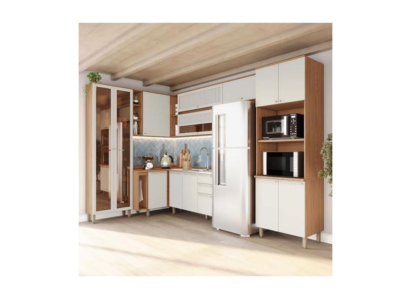 Cozinha Completa Requinte 14 Portas 2 Gavetas Ripado Com Vidro Ce884 N