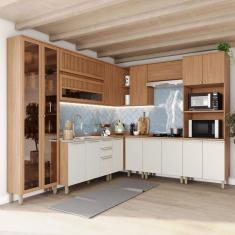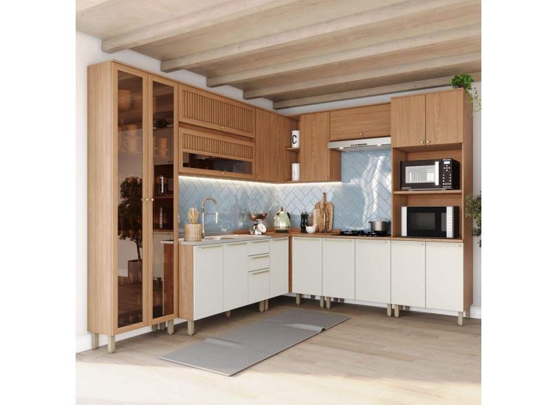 O menor preço encontrado no Brasil para Cozinha Completa Requinte 18 Portas 2 Gavetas Ripado com Vidro Nature/Areia - Henn atualmente é R$ 4.960,13.