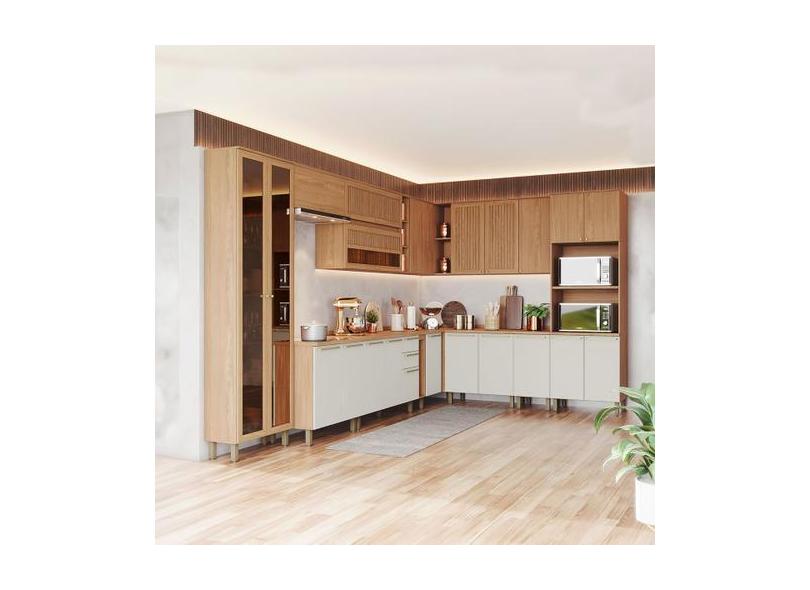 Cozinha Completa Requinte 22 Portas 2 Gavetas Ripado Com Vidro Nature/