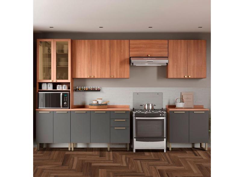 Cozinha Completa Sálvia 14 Portas 3 Gavetas Com Vidro Freijó/grafite -