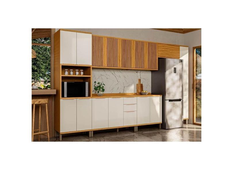 Cozinha Completa Sauvignon 7 Peças (3Aéreos+2Balcões+1Paneleiro+1TorreQuente) C7P91 Amendoa/Off White - Ronipa