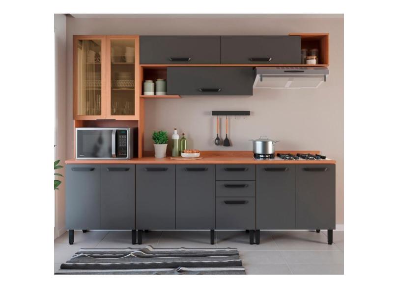 Cozinha Completa Thela Márcia 4 Pçs c/ Balcão Freijó/grafite