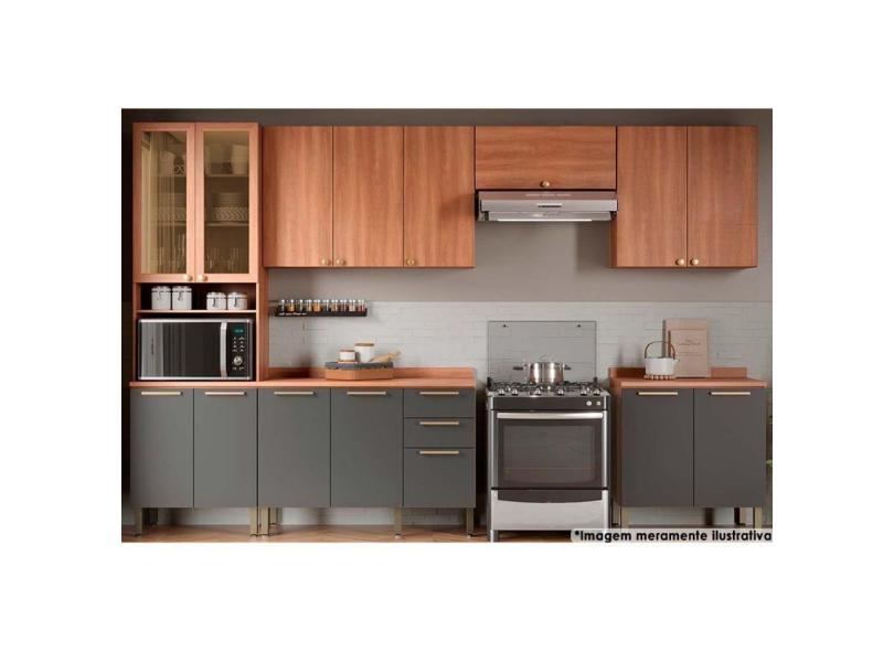Cozinha Completa Thela Sálvia (3 Aéreos, 2 Balcões, 1 Paneleiro) 6 Peças Freijo/grafite - Telasul