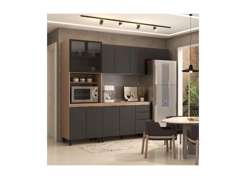 Cozinha Completa Torino 11 Portas 2 Gavetas Avena Touch/Grafito - Pnr