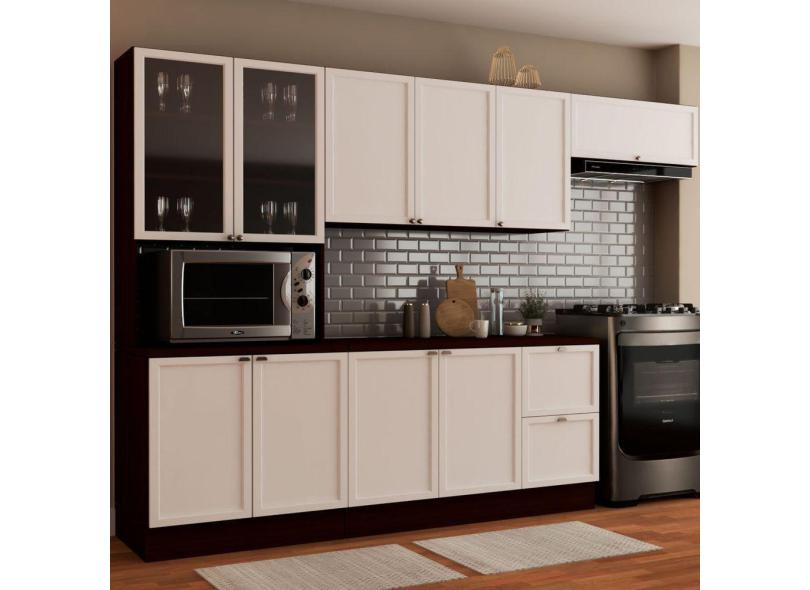 O menor preço encontrado no Brasil para Cozinha Completa Turim 10 Portas 2 Gavetas com Vidro Nogueira/Branco - Panorama Móveis atualmente é R$ 2.770,73.