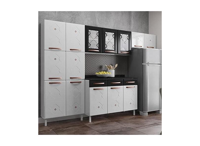 Cozinha de Aço Compacta 3 Peças Regina Multimóveis Glass Cr6135 Branco/preto