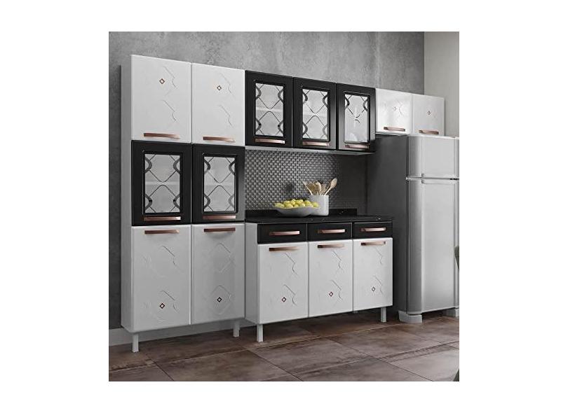 Cozinha de Aço Compacta 3 Peças Regina Multimóveis Glass Cr6137 Branco/preto