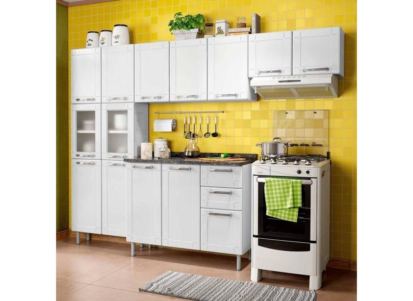 Cozinha de Aço Compacta 4 Peças com 14 Portas e Balcão 3 Portas 2 Gavetas Multipla Bertolini Branco