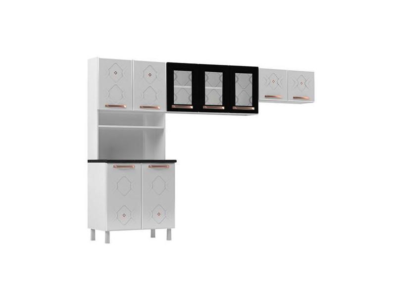 Cozinha De Aço Compacta Mirage 9 Portas Com Vidro Branco/Preto - Telas