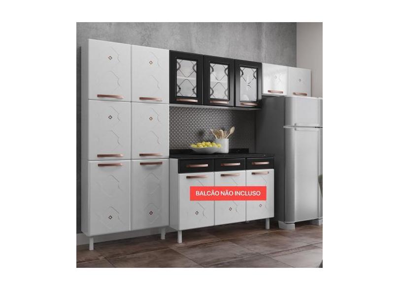 Cozinha De Aço Compacta Telasul Mirage New 3 Vidros 3 Peças Branco/Pre
