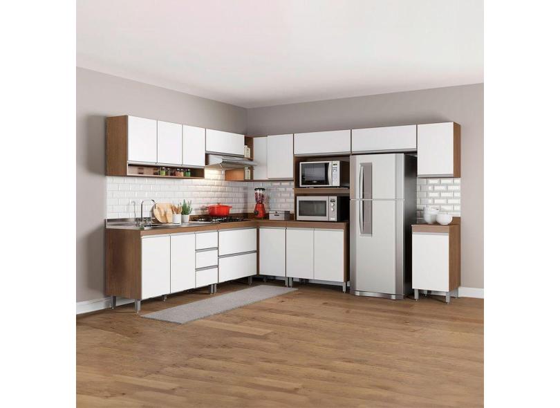 Cozinha de Canto Modulada com Armário Aéreo Balcão Sabrina 252/294x202 Cm 10 Peças MDP Branco MENU