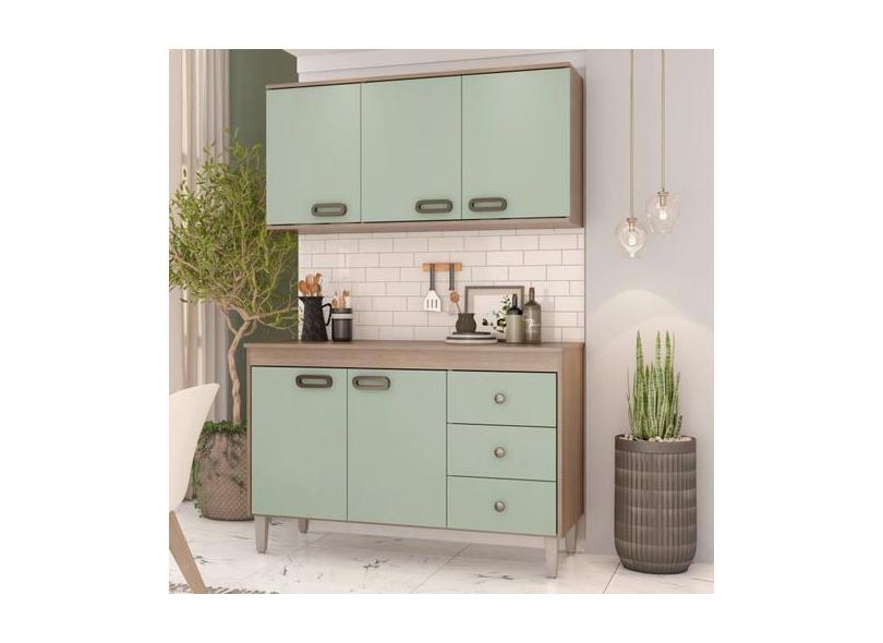 Cozinha Moderna E Compacta Armário Aéreo E Galpão 120cm Bréscia Verde/