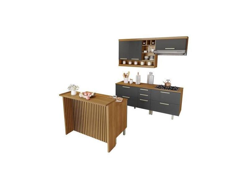 Cozinha Modulada 100% Mdf 6 Peças Nesher Burguesa Marrom Grafite