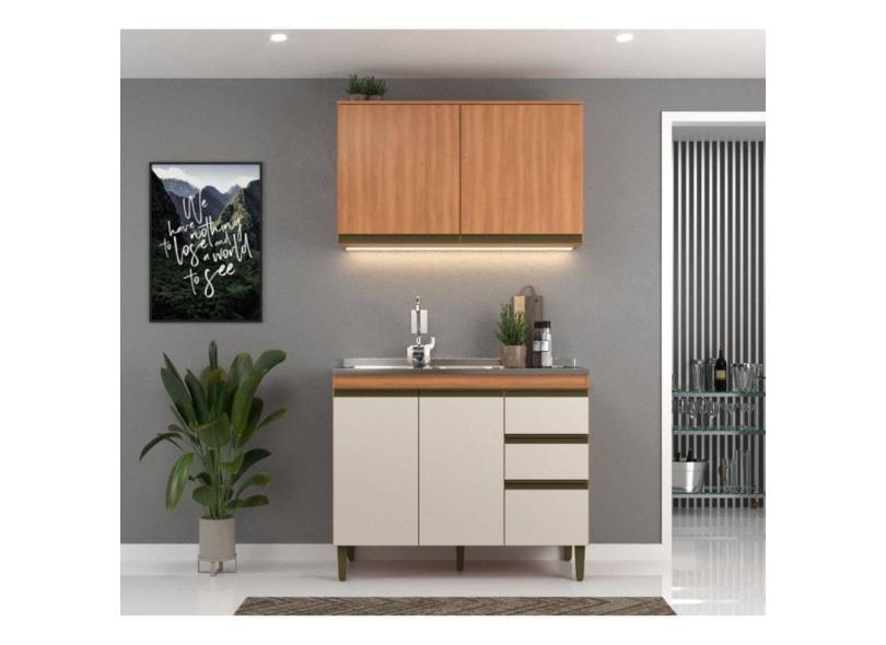 Cozinha Modulada 2 Peças 4 Portas 3 Gavetas 120cm Cecília Nogueira/Off White
