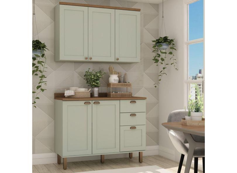 O menor preço encontrado no Brasil para Cozinha Modulada 2 Peças com Balcão e Armário Aéreo e Tampo Provençal Verde Mint atualmente é R$ 1.035,27.