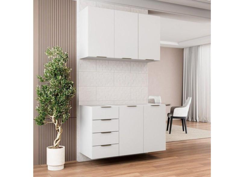 Cozinha Modulada 2 Peças sem Tampo 1 Aéreo 3 Portas e 1 Balcão Pia Ipanema Cabecasa Madeiramadeira Branco