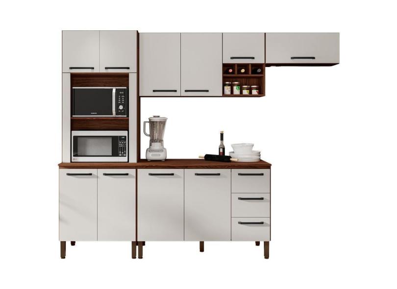 Cozinha Modulada 260cm 10 Portas 772am Nogueira Off White Ktp Nogueira Off White