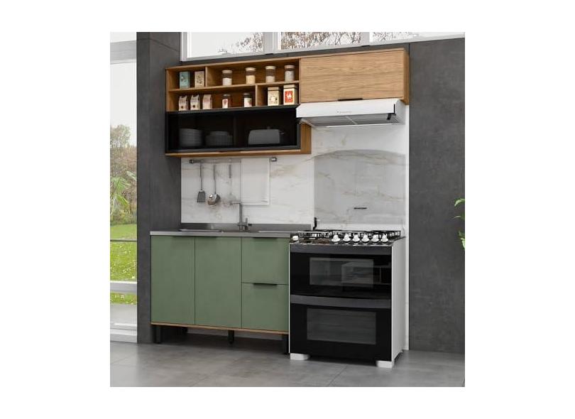 O menor preço encontrado no Brasil para Cozinha Modulada 3 Peças Mdf com Aéreo 1200cm Porta de Vidro Basculante Toscana Freijó/Jade atualmente é R$ 1.103,36.