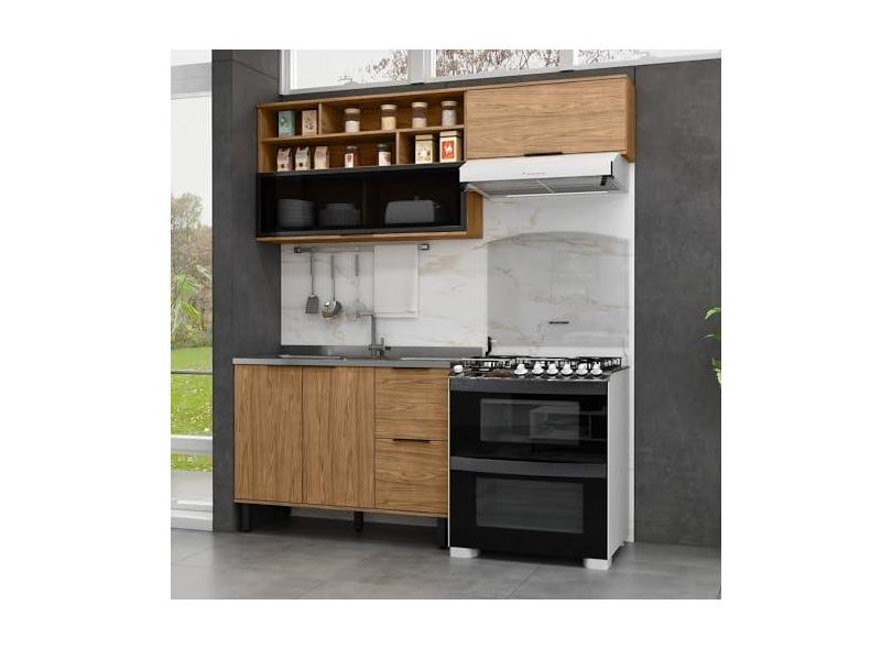O menor preço encontrado no Brasil para Cozinha Modulada 3 Peças Mdf com Aéreo 1200cm Porta de Vidro Basculante Toscana Freijó atualmente é R$ 919,09.