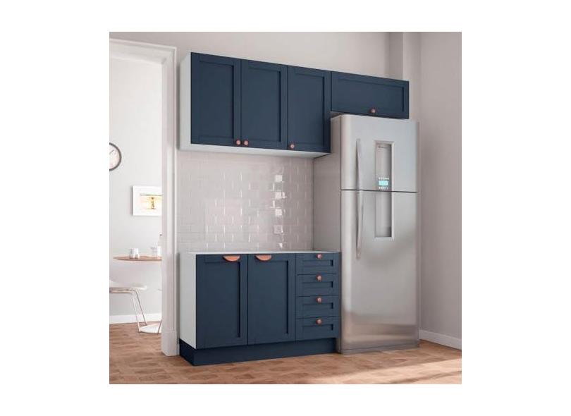 Cozinha Modulada 3 Peças Sem Tampo 2 Aéreos 1 Balcão Arizona Cabecasa Madeiramadeira Branco/azul