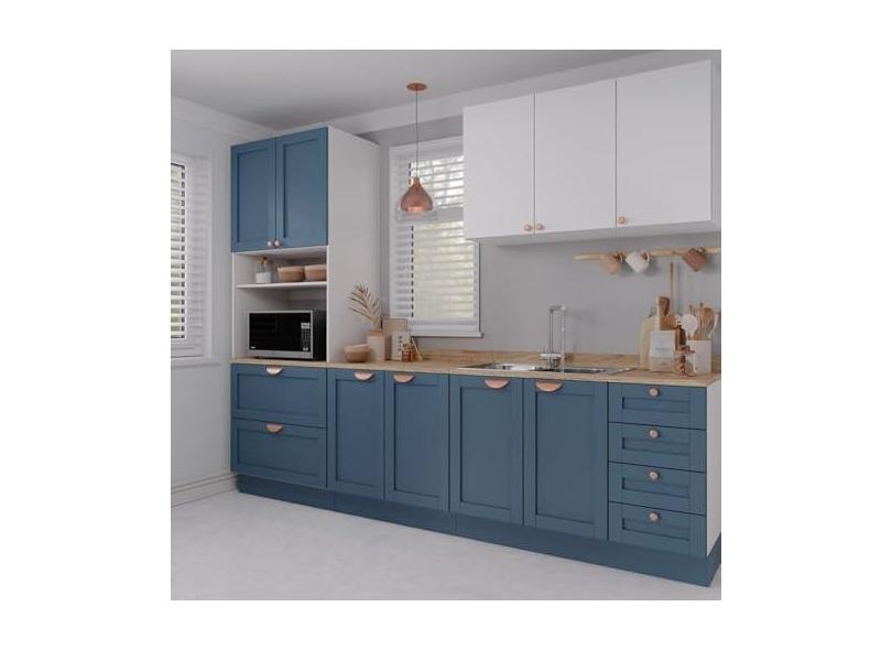 Cozinha Modulada 4 Peças 1 Torre Microondas 1 Aéreo 2 Balcões Arizona Cabecasa Madeiramadeira Branco/Azul