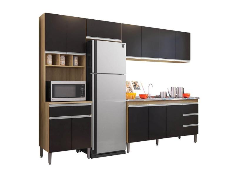 Cozinha Modulada 4 Peças Balcão Com Pia 160cm Andréia Amêndoa/preto - Ajl Móveis