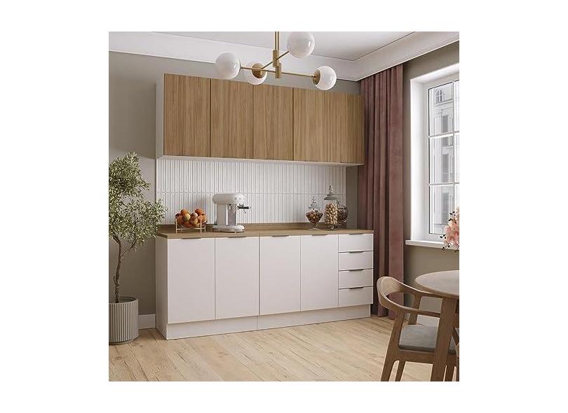 Cozinha Modulada 4 Peças com Tampo 2 Aéreos e 2 Balcões Ipanema Cabecasa Madeiramadeira Acácia/branco