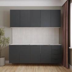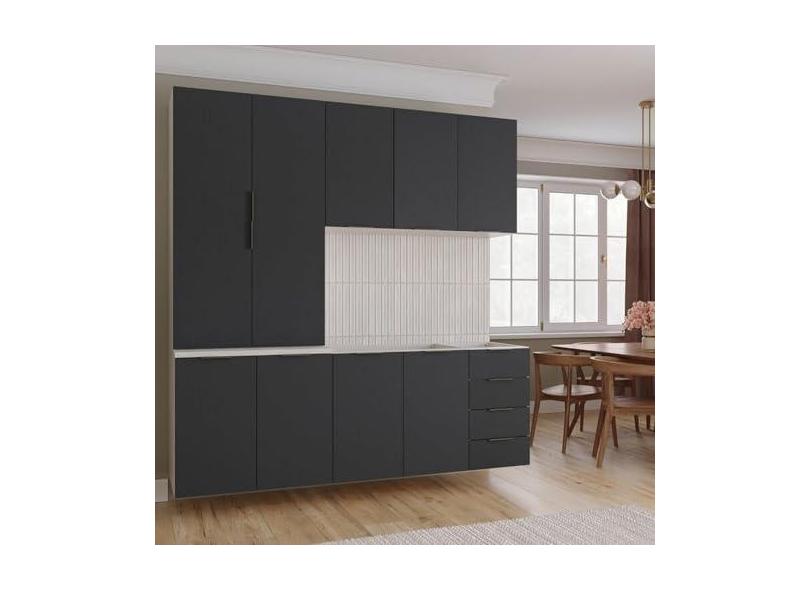 Cozinha Modulada 4 Peças sem Tampo sem Rodapé 2 Aéreos e 2 Balcões Ipanema CabeCasa MadeiraMadeira Grafite Trama