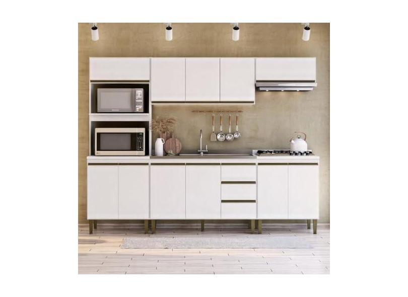 O menor preço encontrado no Brasil para Cozinha Modulada 5 Peças 2 Aéreos 2 Balcões e 1 Torre Quente Margarida Branco atualmente é R$ 1.796,95.