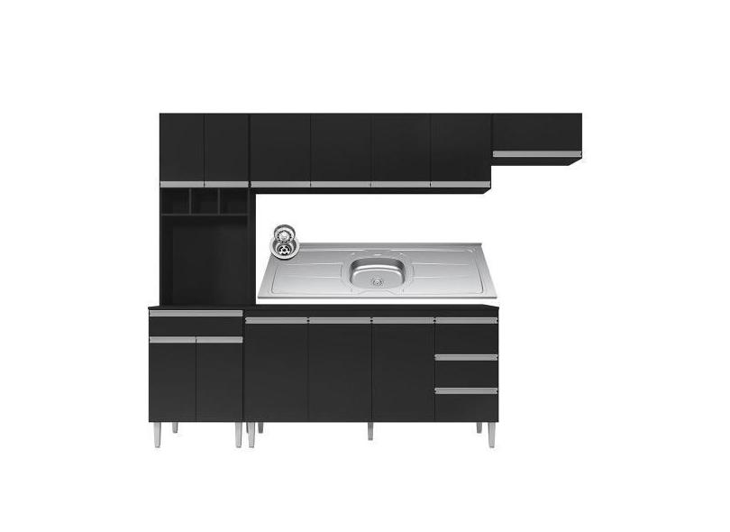 O menor preço encontrado no Brasil para Cozinha Modulada 5 Peças Balcão Com Pia 160cm Andréia Preto - Ajl Móve atualmente é R$ 2.126,64.