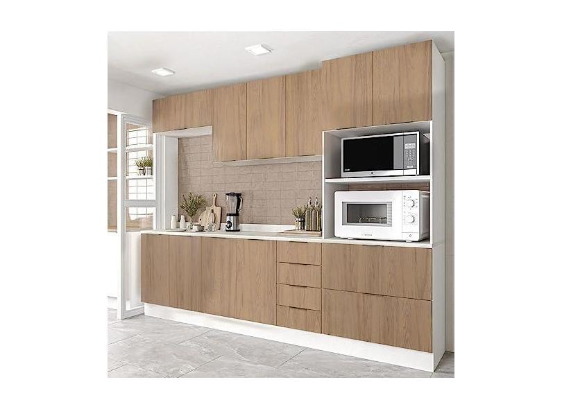 Cozinha Modulada 5 Peças com Tampo 2 Aéreos e 2 Balcões 1 Torre Quente Ipanema Cabecasa Madeiramadeira Acácia/branco