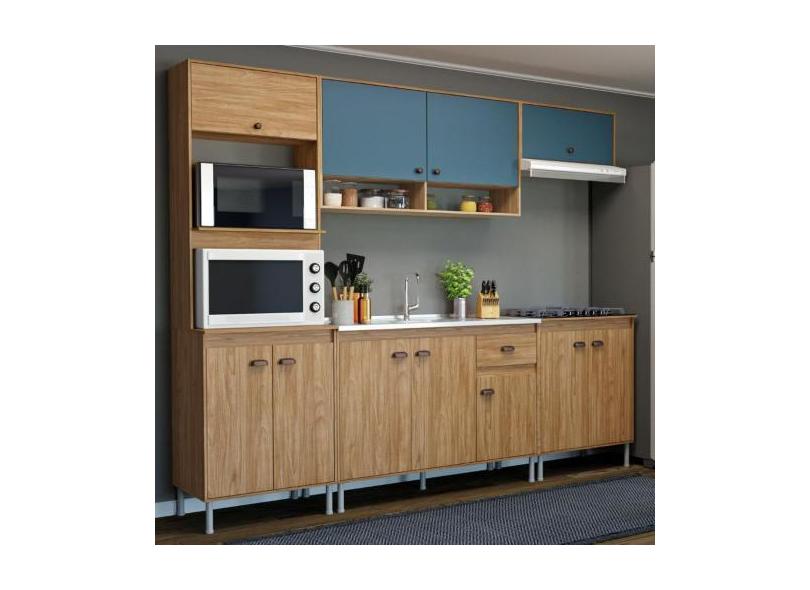 Cozinha Modulada 5 Peças sem Tampo Torino Movelbento, Mel/Petroleo