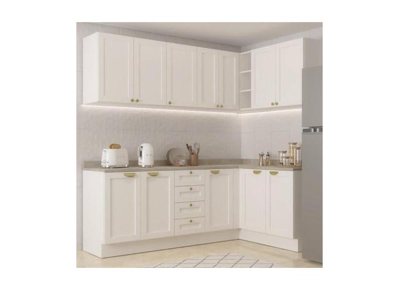 Cozinha Modulada 6 Peças 3 Armários Aéreos e Nichos, 3 Balcões Cabecasa Madeiramadeira Branco