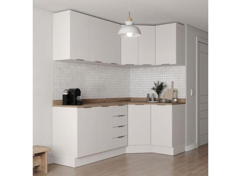 Cozinha Modulada 6 Peças com Tampo 3 Aéreos 6 Portas e 3 Balcões Ipanema CabeCasa MadeiraMadeira Branco