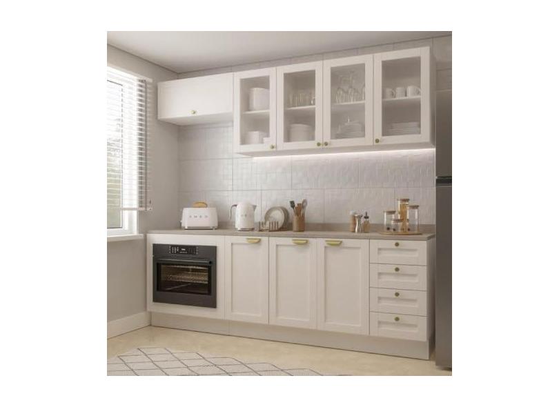 Cozinha Modulada 6 Peças com Tampo, Portas de Vidro e Balcão para Forno de Embutir Cabecasa Madeiram Branco