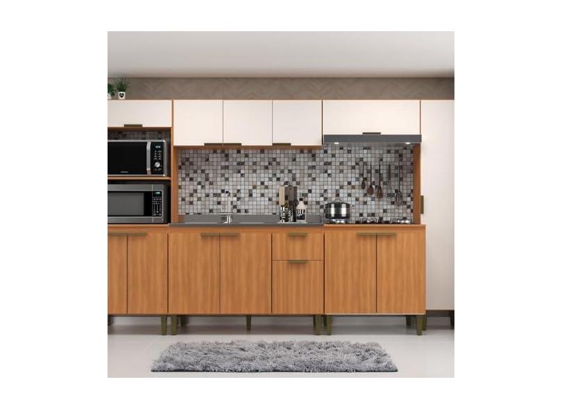 Cozinha Modulada 6 Peças Iara 300cm X 193cm X 53cm Freijó/Off White