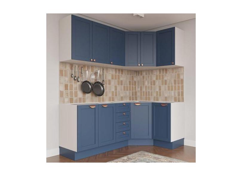 Cozinha Modulada 6 Peças sem Tampo 3 Aéreos 6 Portas e 3 Balcões Arizona Cabecasa Madeiramadeira Branco/azul