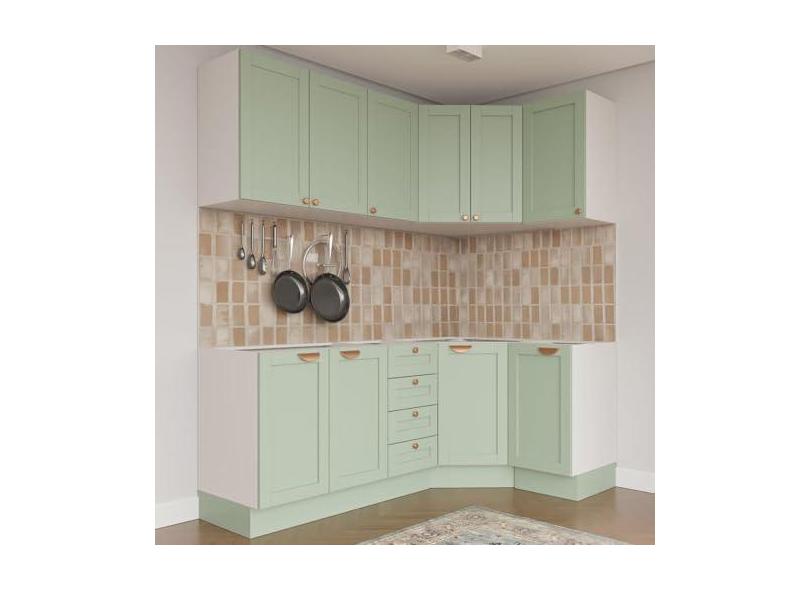 Cozinha Modulada 6 Peças sem Tampo 3 Aéreos 6 Portas e 3 Balcões Arizona Cabecasa Madeiramadeira Branco/menta