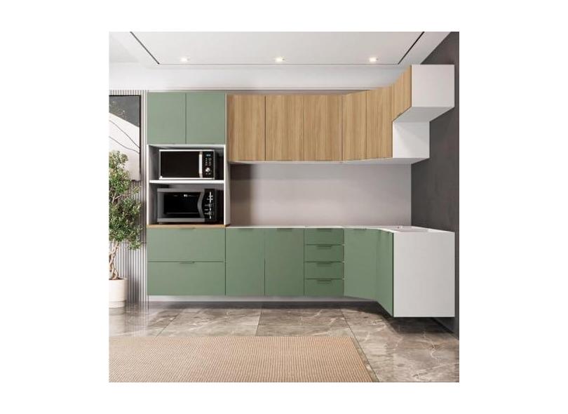 Cozinha Modulada 7 Peças sem Tampo 3 Aéreos 3 Balcões e Torre Quente Ipanema Cabecasa Madeiramadeira Verde/amadeirado
