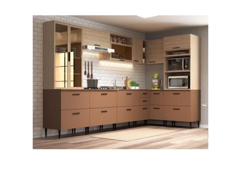 Cozinha Modulada 8 Peças 18 Portas e 2 Gavetas Bárbara Aveiro Oak/Terracota