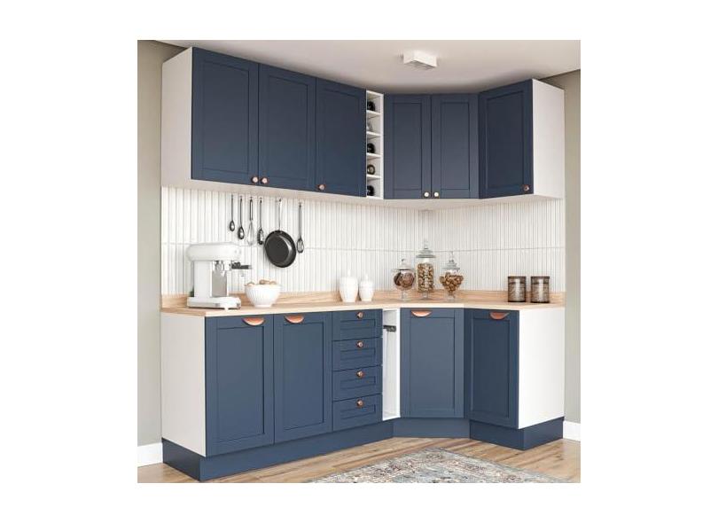 Cozinha Modulada 8 Peças 3 Aéreos 3 Balcões Adega e Toalheiro Arizona Cabecasa Madeiramadeira Azul/branco
