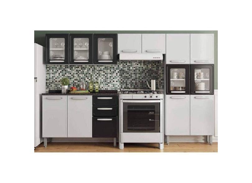 Cozinha Modulada Bertolini Evidence 4pçs (2 Armários + 1 Balcão + 1 Paneleiro) C4P57 Branco/Preto