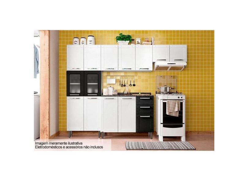 Cozinha Modulada Bertolini Múltipla 4 Peças (2 Armários + 1 Balcão + 1 Paneleiro) C4P82 Branco/Preto