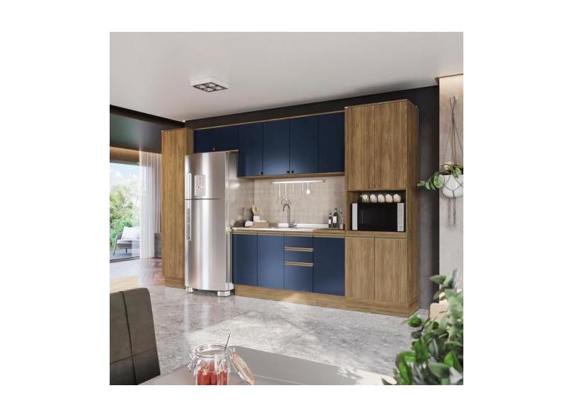 Cozinha Modulada Celeste Kappesberg 100% MDF Nogueira/Azul 8 Peças