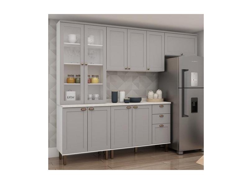 Cozinha Modulada com Cristaleira com Tampo Impermeável 100% Mdf Ilumin