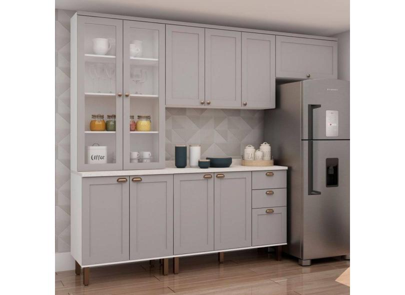 O menor preço encontrado no Brasil para Cozinha Modulada com Cristaleira com Tampo Impermeável 100% Mdf Iluminata Branco/Cinza atualmente é R$ 2.399,98.