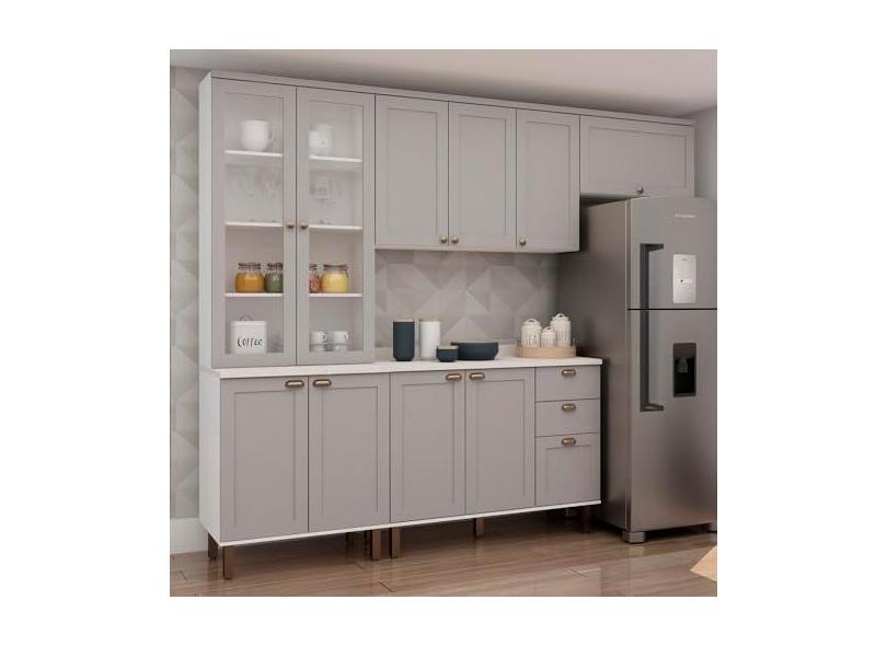O menor preço encontrado no Brasil para Cozinha Modulada com Cristaleira com Tampo Impermeável 100% Mdf Iluminata Branco/Fendi atualmente é R$ 2.591,98.
