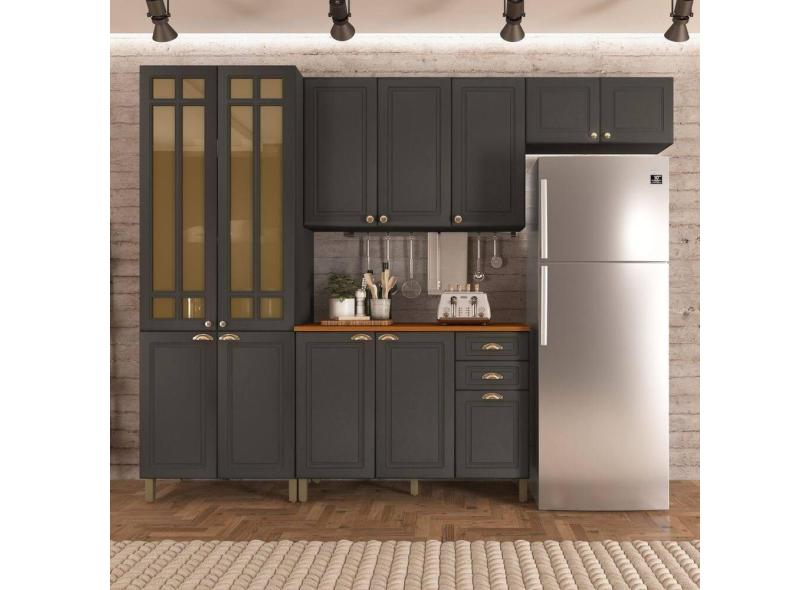 Cozinha Modulada Compacta 4 Peças 12 Portas 2 Gavetas Paris Cinza