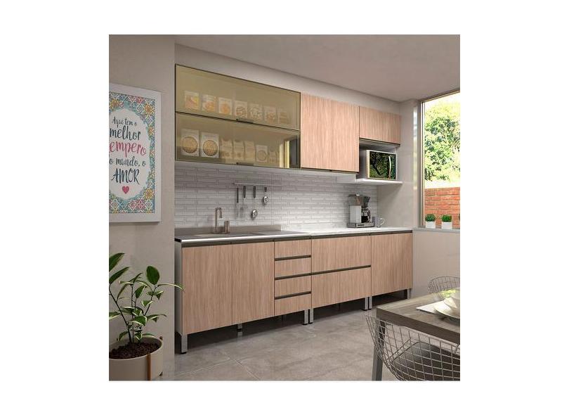 O menor preço encontrado no Brasil para Cozinha Modulada Compacta 7 Peças Sem Tampo De 120 Branco Com Cumaru P atualmente é R$ 5.234,71.