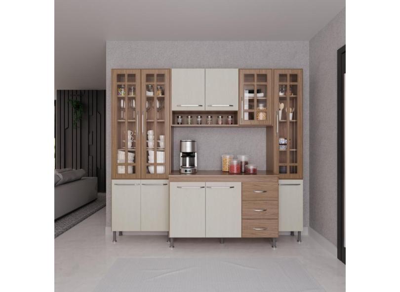 O menor preço encontrado no Brasil para Cozinha Modulada Compacta Fidelitá Paris 4 Peças 225cm 11 Portas 3 Gavetas Com Tampo Nogal/salinas atualmente é R$ 1.409,90.